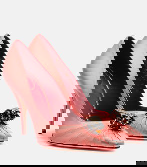 Valentino Garavani's 'Pas De Chat' pumps are topped with a bejeweled jungle cat on the gathered toes. The cheetahs are studded with Swarovski® crystals, which make them unmissable under the light. They're made from leather with a red lining that pops.