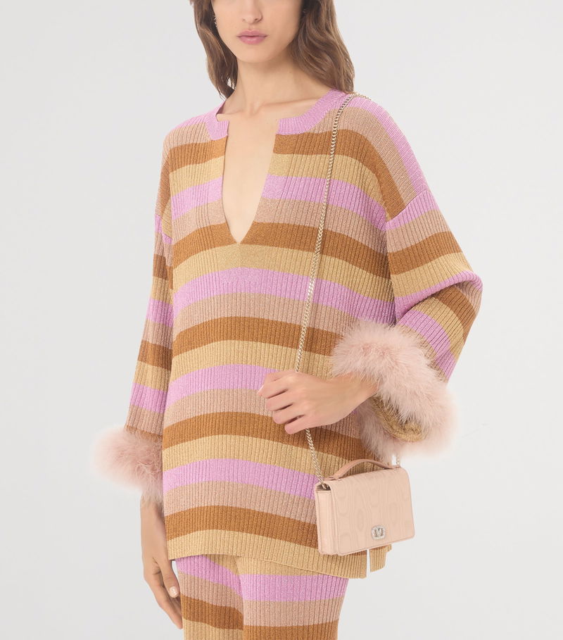 Garavani is better known by his mononym, Valentino. From the signature Rockstud leather shoes to richly embellished dresses, knitwear, tailoring and separates, Valentino Garavani pieces are characterised by a bold and playful use of colour and pattern, with a through line of glamour and luxury.