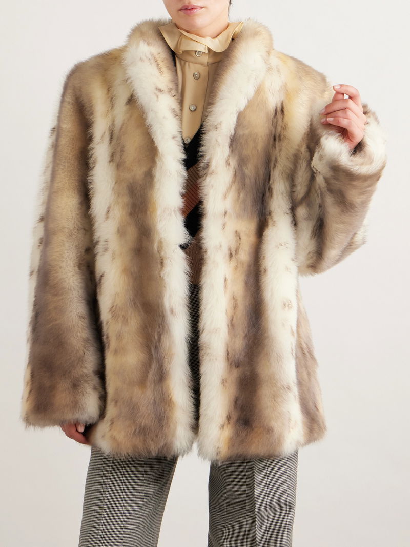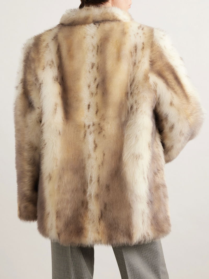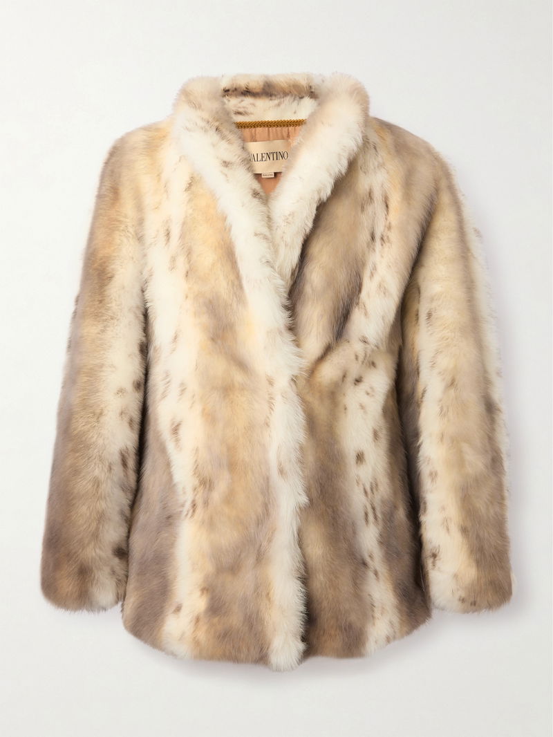 Valentino Garavani's coat resembles luxuriously chic styles from the '70s. Made in Italy from shearling patterned with lynx spots, it has padded shoulders that enhance the drama and is fully lined for comfort and smooth layering.