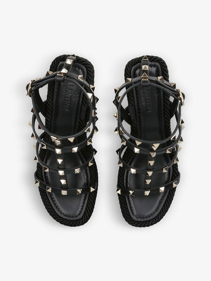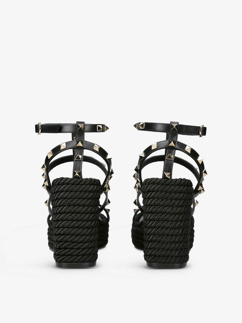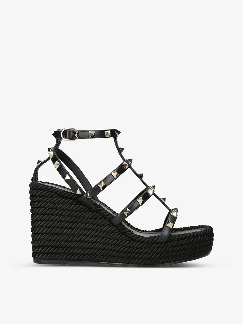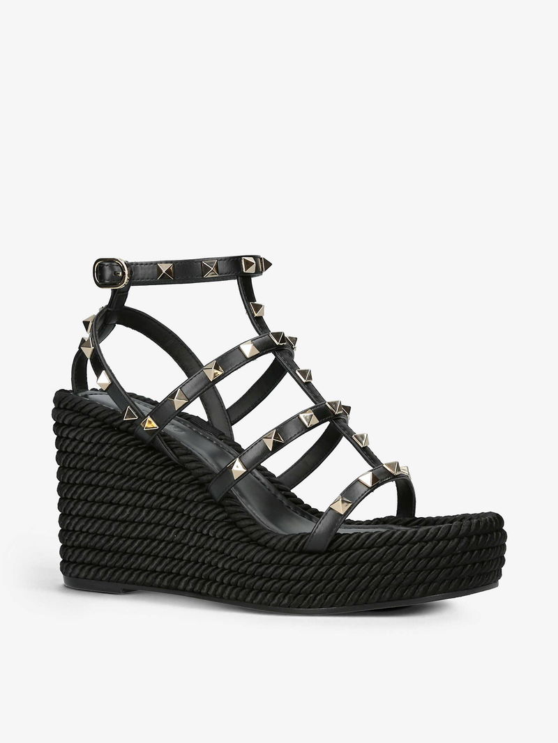 Take your designer collection poolside with this latest pair of sandals by Valentino Garavani. The comfy wedge heels are set with braided silky ropes, while their caged design keeps the anatomically sculpted, leather-lined footbeds in place as you stroll from the water to the bar. Of course, a splash of grit is expected from the Italian maison, shining through the peppering of Rockstud embellishments (the label's signature) laced across the straps.