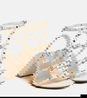 Valentino Garavani looked to ancient architecture to create the now-iconic Rockstud embellishments. These sandals are crafted from supple leather, set on low block heels, and embellished with the beloved studs.