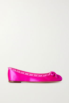 Valentino Garavani knows how to make classic designs feel entirely its own - closely recalling traditional ballet slippers, these flats are traced with the label's instantly recognizable 'Rockstuds'. They're made from platinum leather that's folded at the rounded toe and have a padded bow embellishment and straps that cross-over at the ankle.