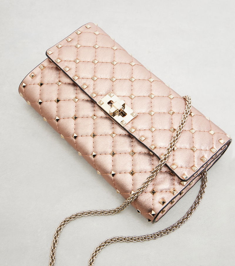 Garavani is better known by his mononym, Valentino. From the signature Rockstud leather shoes to richly embellished dresses, knitwear, tailoring and separates, Valentino Garavani pieces are characterised by a bold and playful use of colour and pattern, with a through line of glamour and luxury.