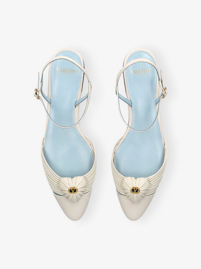 • Almond closed toe, VLogo Signature-embellished hearts, gold-toned hardware, slim straps, adjustable ankle strap, branded footbed, flat sole