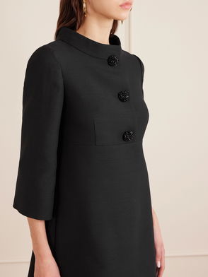 This mini dress is from Valentino Garavani's Resort '25 lookbook - Alessandro Michele's debut for the house. Made from wool and silk-blend crepe, it's trimmed with mesh and silk ruffles and embellished with embroidery, beads, and bows, all of which contribute to the piece's authentic vintage charm.