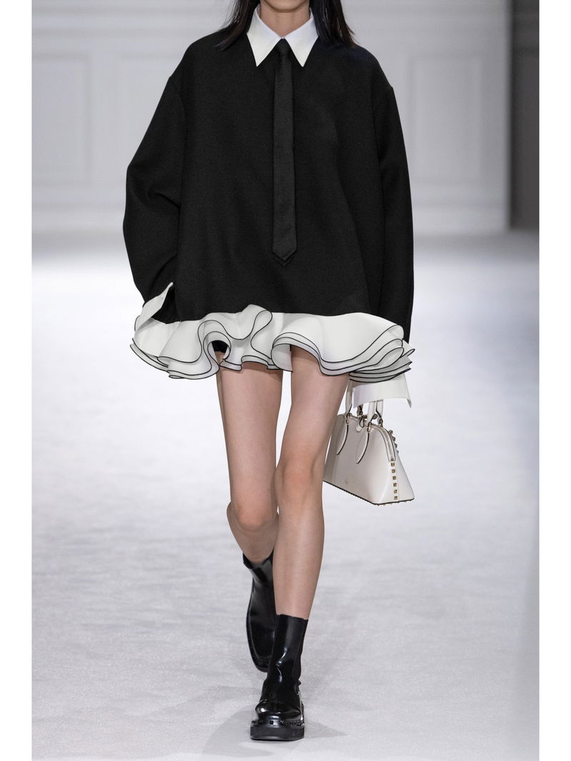 Garavani is better known by his mononym, Valentino. From the signature Rockstud leather shoes to richly embellished dresses, knitwear, tailoring and separates, Valentino Garavani pieces are characterised by a bold and playful use of colour and pattern, with a through line of glamour and luxury.