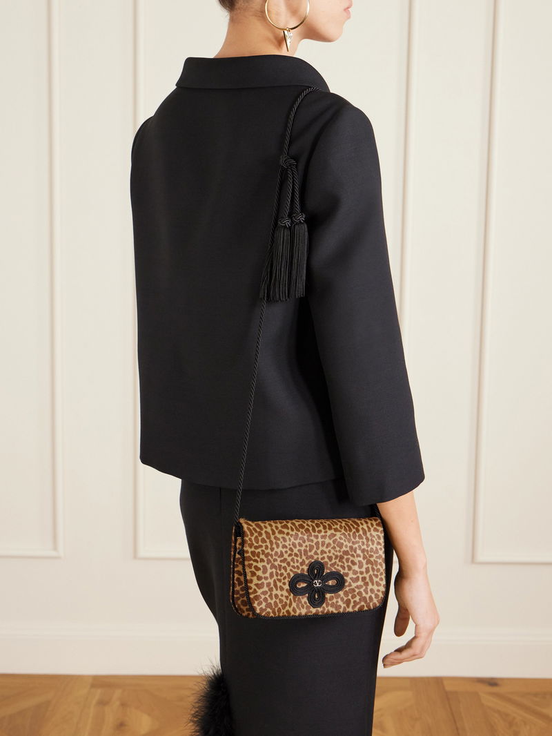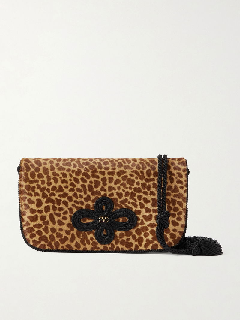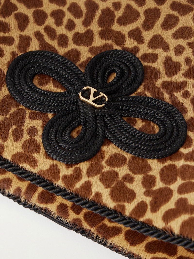 Sans Fin Tasseled Cord-trimmed Leopard-print Calf Hair Clutch