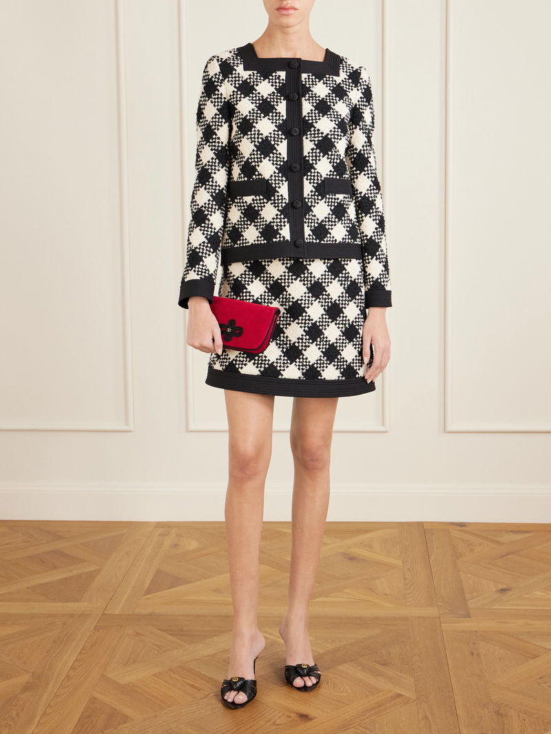 Garavani is better known by his mononym, Valentino. From the signature Rockstud leather shoes to richly embellished dresses, knitwear, tailoring and separates, Valentino Garavani pieces are characterised by a bold and playful use of colour and pattern, with a through line of glamour and luxury.