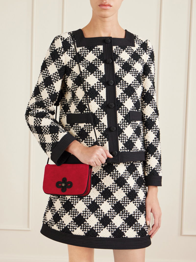 It's crafted from plush suede, trimmed with cord and finished with a duo of swishy tassels. Inside, there's space for your phone, keys and lipstick.