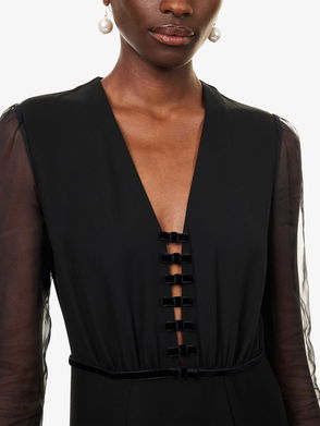 Valentino Garavani's midi dress is a chic choice for formal daytime events. It's made from weightless silk that's jacquard-woven with the iconic 'VLOGO' motif and has a flowing A-line skirt. Let the scarf drape loose along the front or fasten into a voluminous pussy-bow.