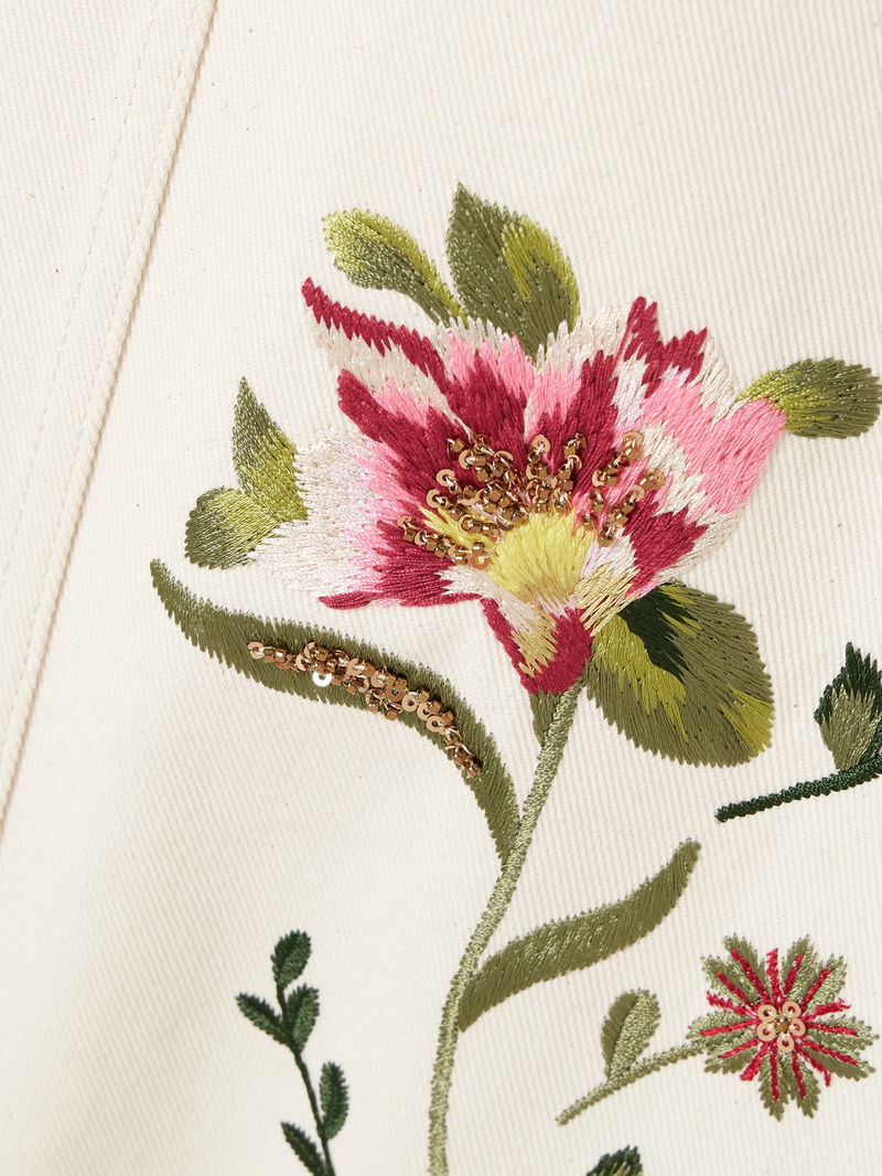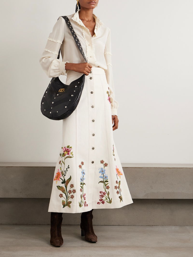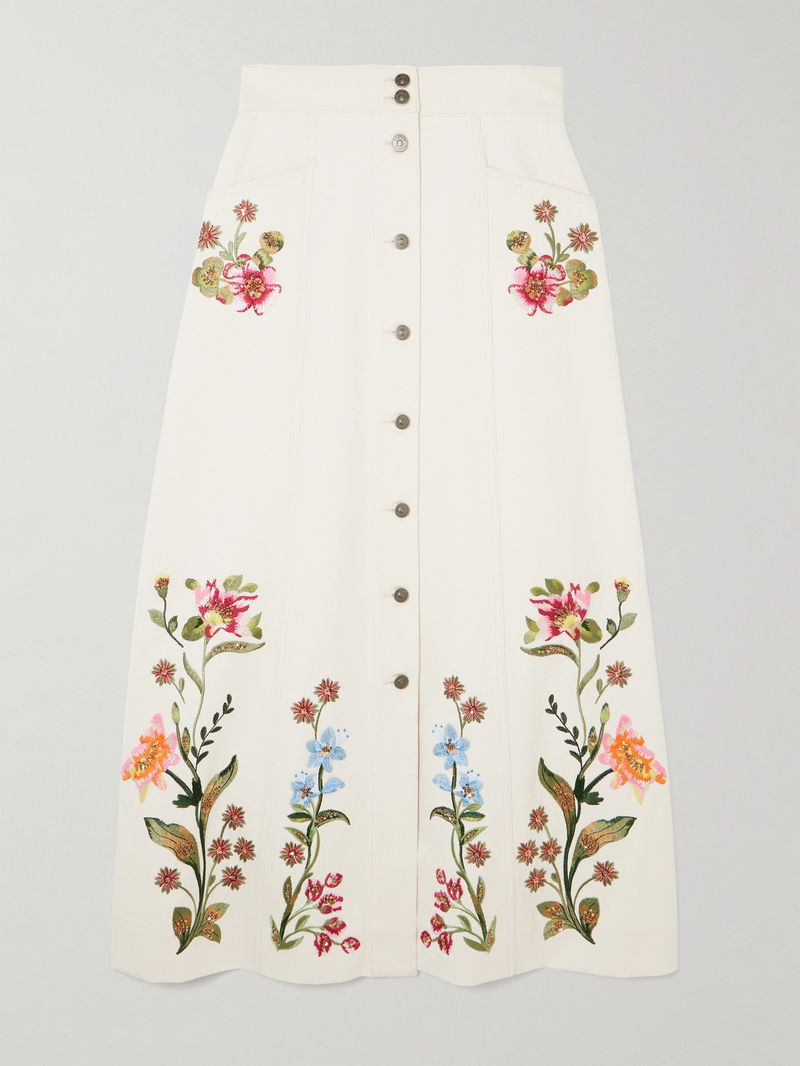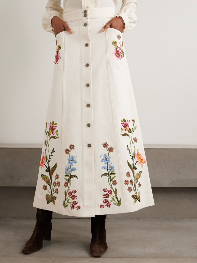 Sequin-embellished Embroidered Denim Maxi Skirt