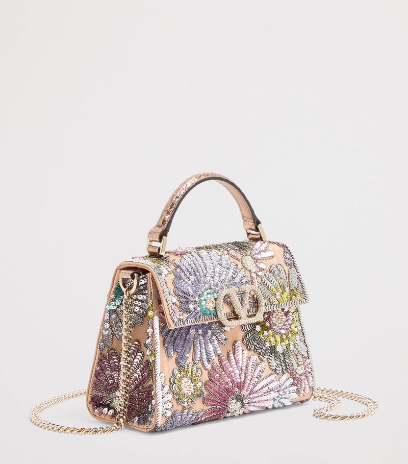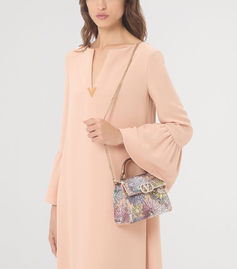 Garavani is better known by his mononym, Valentino. From the signature Rockstud leather shoes to richly embellished dresses, knitwear, tailoring and separates, Valentino Garavani pieces are characterised by a bold and playful use of colour and pattern, with a through line of glamour and luxury.