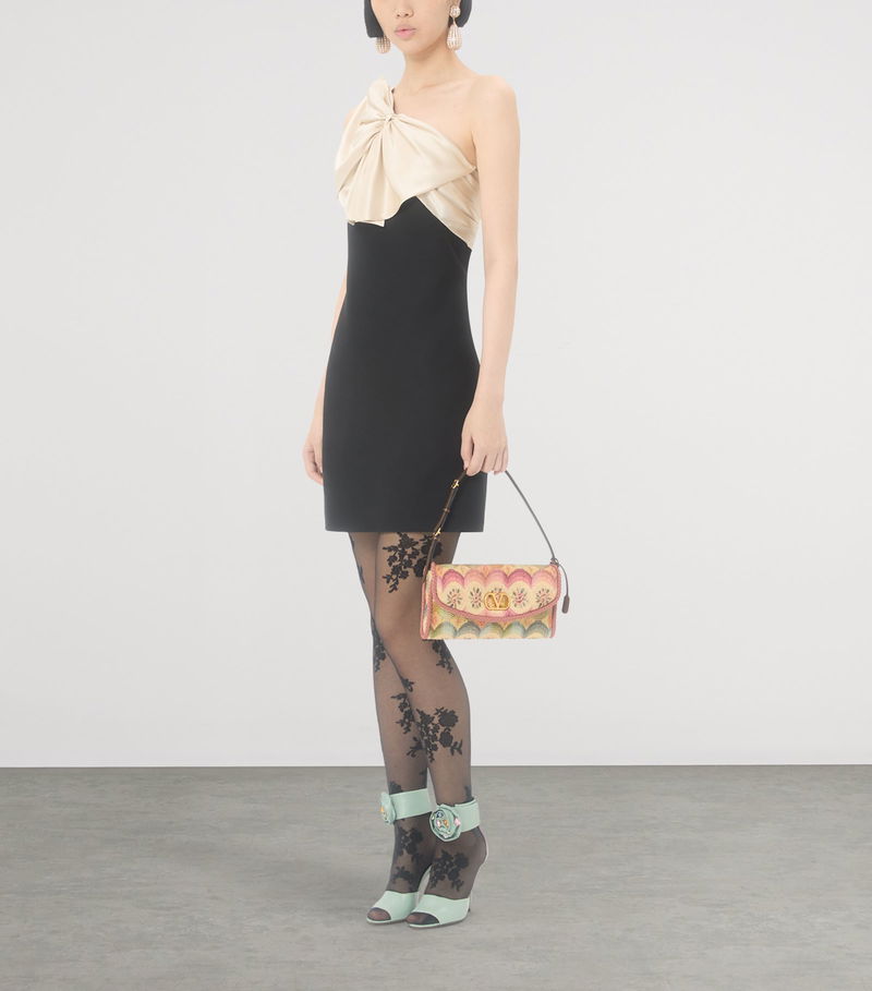 Garavani is better known by his mononym, Valentino. From the signature Rockstud leather shoes to richly embellished dresses, knitwear, tailoring and separates, Valentino Garavani pieces are characterised by a bold and playful use of colour and pattern, with a through line of glamour and luxury.