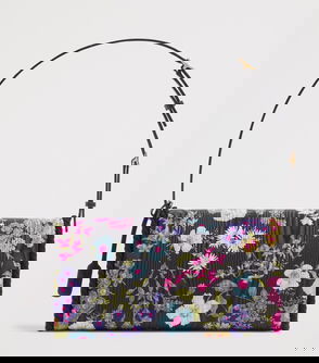 Valentino Garavani lends rustic romance to the everyday with this suede tote, where delicate floral embroidery blooms against soft shearling trims. The golden VLogo gleams at the crown, a touch of House glamour that contrasts with the bag's tactile, countryside charm.