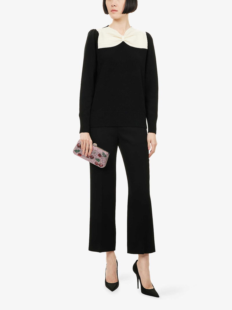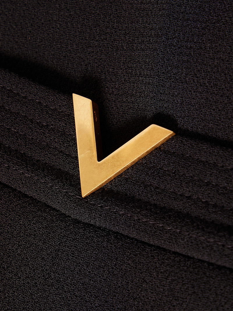 Garavani is better known by his mononym, Valentino. From the signature Rockstud leather shoes to richly embellished dresses, knitwear, tailoring and separates, Valentino Garavani pieces are characterised by a bold and playful use of colour and pattern, with a through line of glamour and luxury.