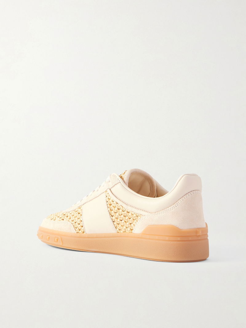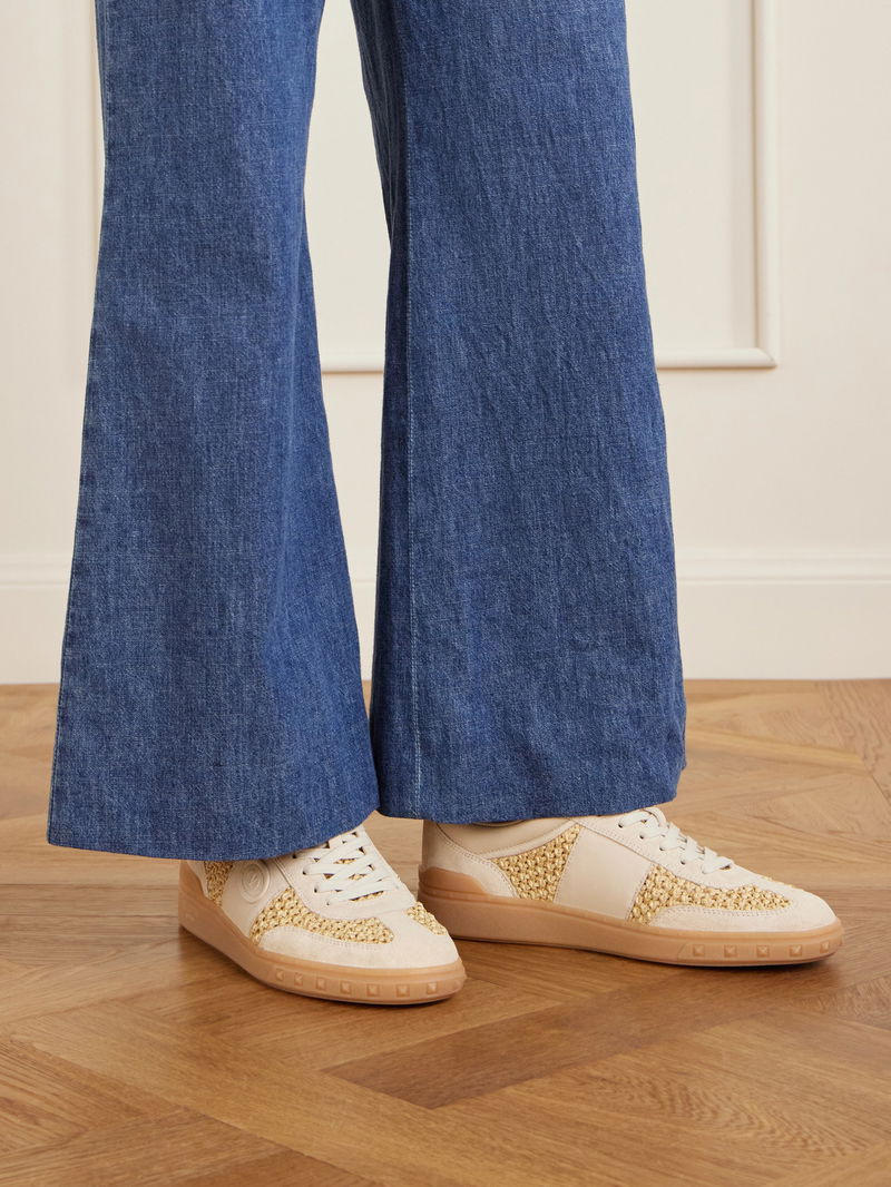 Valentino's 'Upvillage' sneakers will instantly elevate anything you wear them with. They've been made in Italy from suede and have summery raffia trims. The rubber soles are detailed with signature 'Rockstuds'.