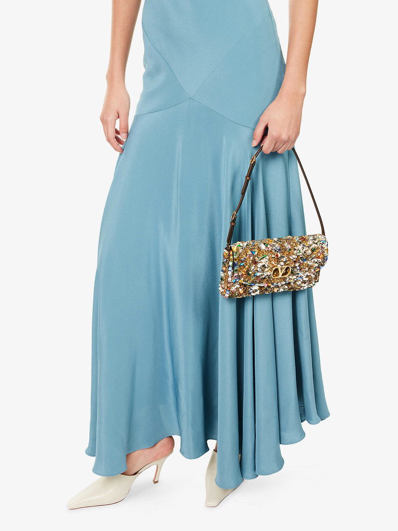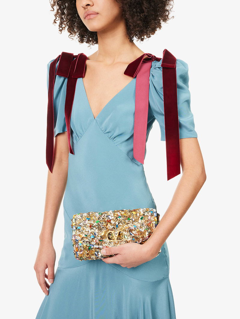 Garavani is better known by his mononym, Valentino. From the signature Rockstud leather shoes to richly embellished dresses, knitwear, tailoring and separates, Valentino Garavani pieces are characterised by a bold and playful use of colour and pattern, with a through line of glamour and luxury.