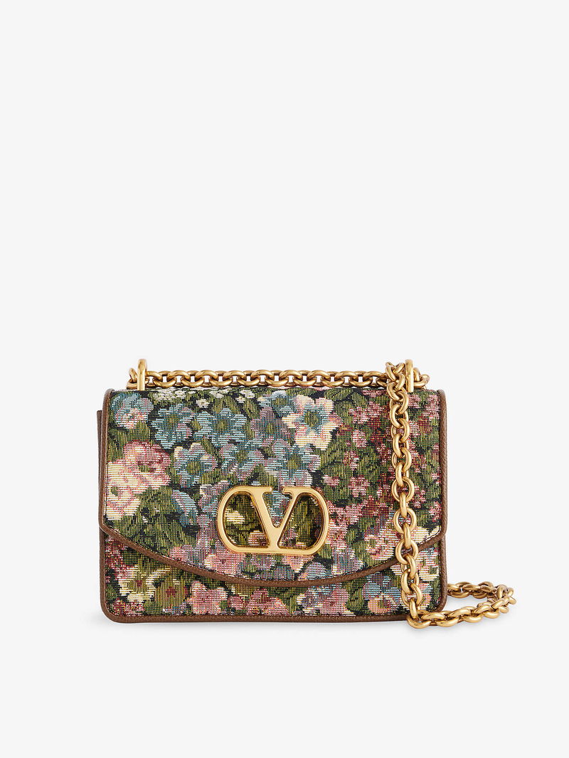 Garavani is better known by his mononym, Valentino. From the signature Rockstud leather shoes to richly embellished dresses, knitwear, tailoring and separates, Valentino Garavani pieces are characterised by a bold and playful use of colour and pattern, with a through line of glamour and luxury.