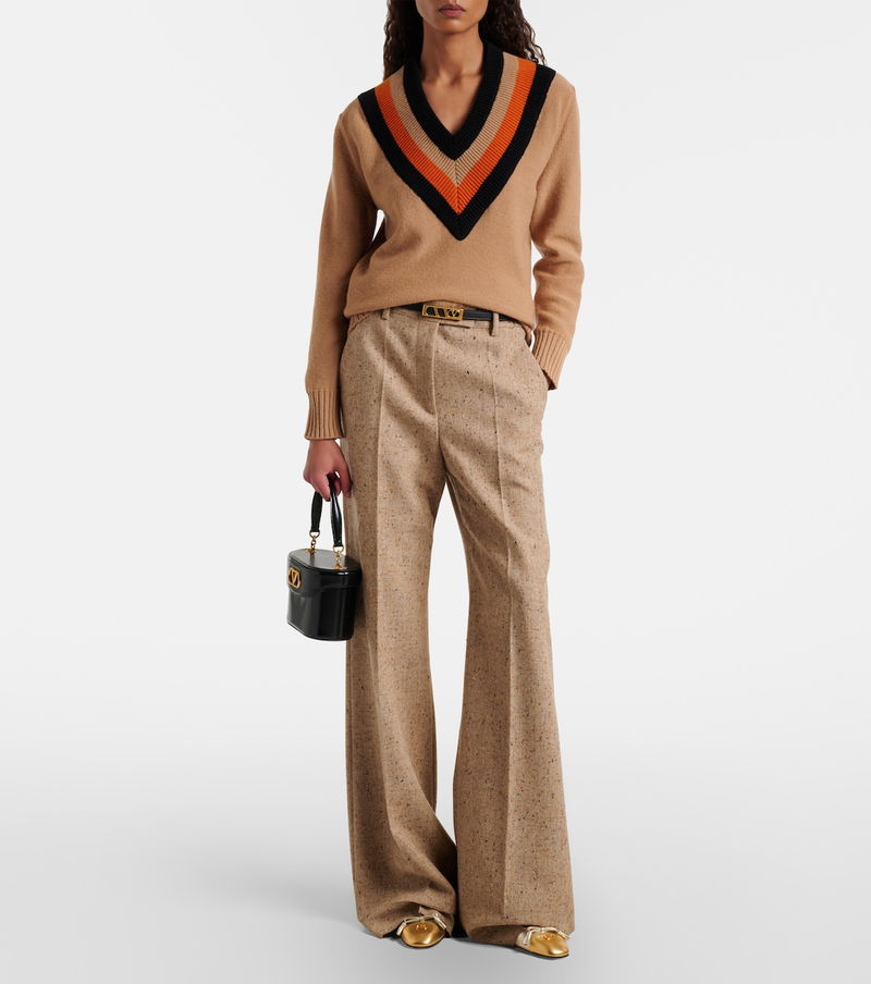 Garavani is better known by his mononym, Valentino. From the signature Rockstud leather shoes to richly embellished dresses, knitwear, tailoring and separates, Valentino Garavani pieces are characterised by a bold and playful use of colour and pattern, with a through line of glamour and luxury.