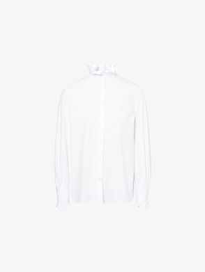 Velvet-trimmed Ruffled Polka-dot Silk-twill Shirt