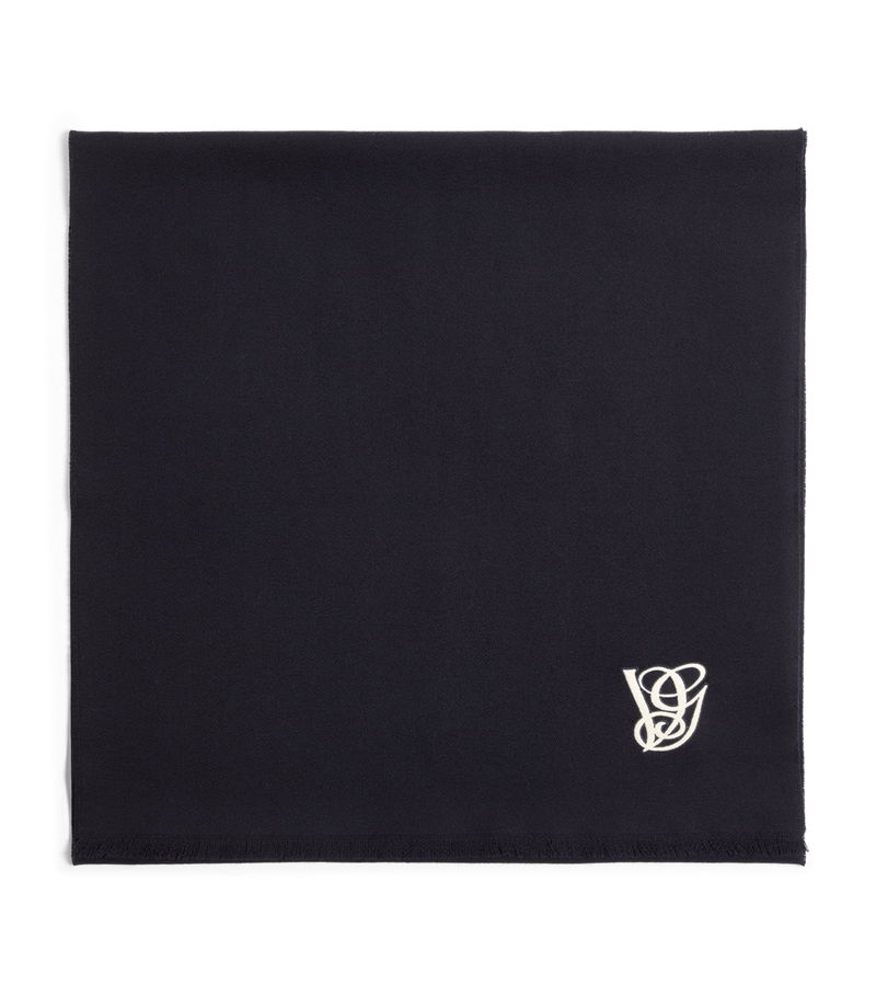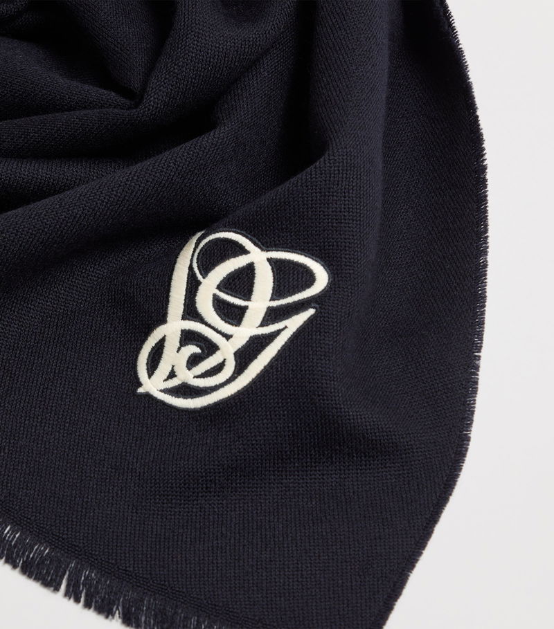 The lightweight accessory boasts embroidered initials to one corner as the only detail, stylising them in an ornate typeface.