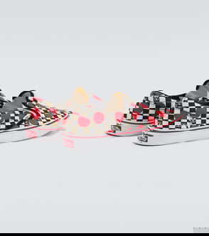 Garavani is better known by his mononym, Valentino. From the signature Rockstud leather shoes to richly embellished dresses, knitwear, tailoring and separates, Valentino Garavani pieces are characterised by a bold and playful use of colour and pattern, with a through line of glamour and luxury.