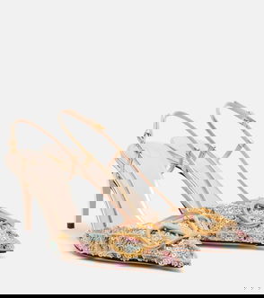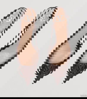 Not only are Valentino Garavani's pumps embellished with the house's 'VLOGO', but the symbol is also jacquard-woven into the raffia at the pointed toe. They're trimmed with contrasting white leather and have adjustable slingback straps.