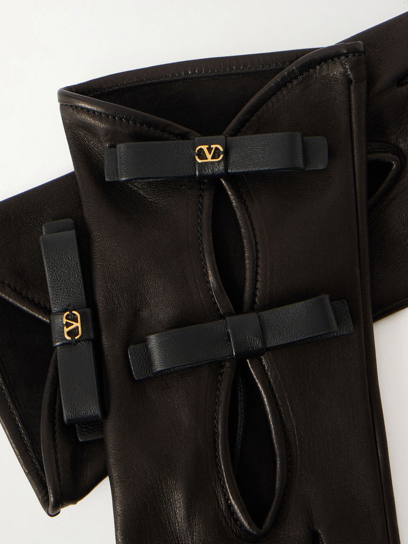 Valentino Garavani's gloves give a refined finish to a cold-weather essential. They're made from soft leather, accented with neat bows and discreet logo plaques for a signature touch. Wear them with a tailored coat or cape to quietly elevate winter outfits.