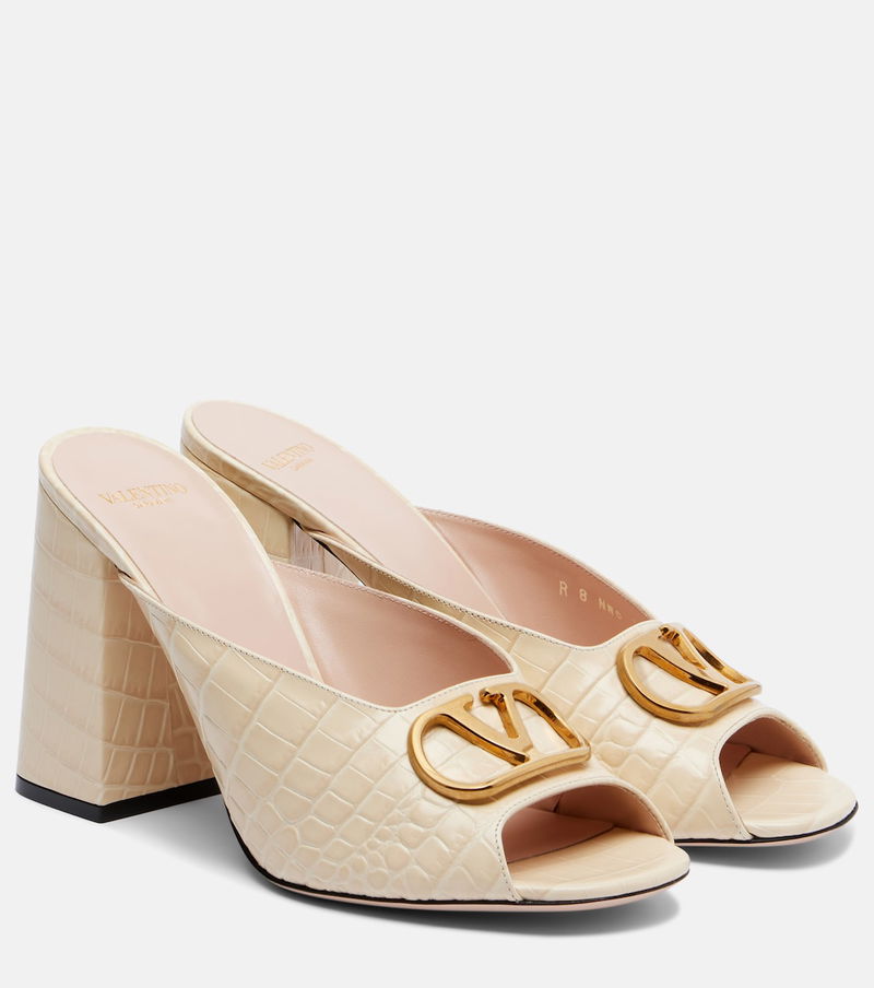 At once iconic and understated, Valentino Garavani's VLogo carries the Maison's legacy of elegance. It adorns the vamps of these bold mules, crafted from croc-effect leather.