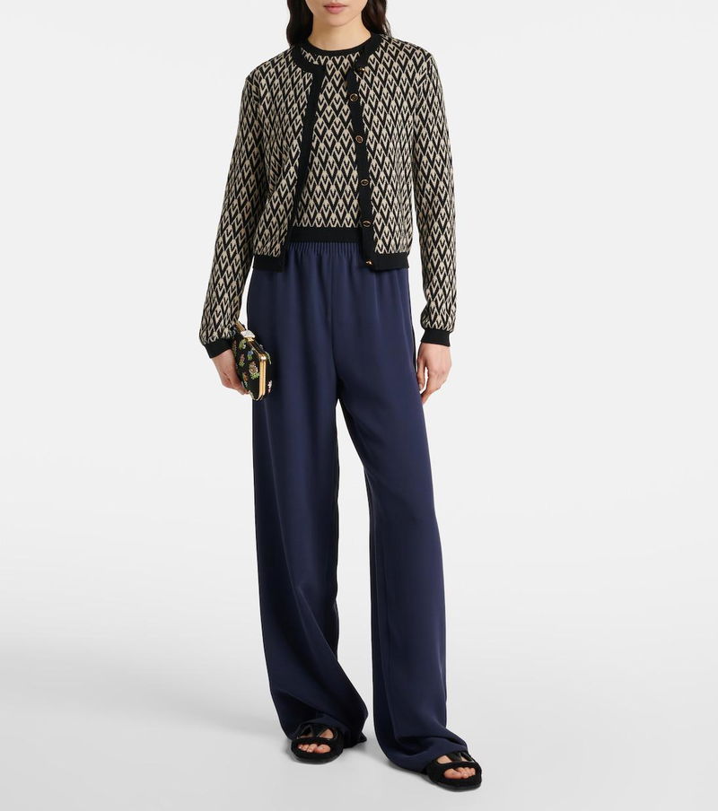 Garavani is better known by his mononym, Valentino. From the signature Rockstud leather shoes to richly embellished dresses, knitwear, tailoring and separates, Valentino Garavani pieces are characterised by a bold and playful use of colour and pattern, with a through line of glamour and luxury.