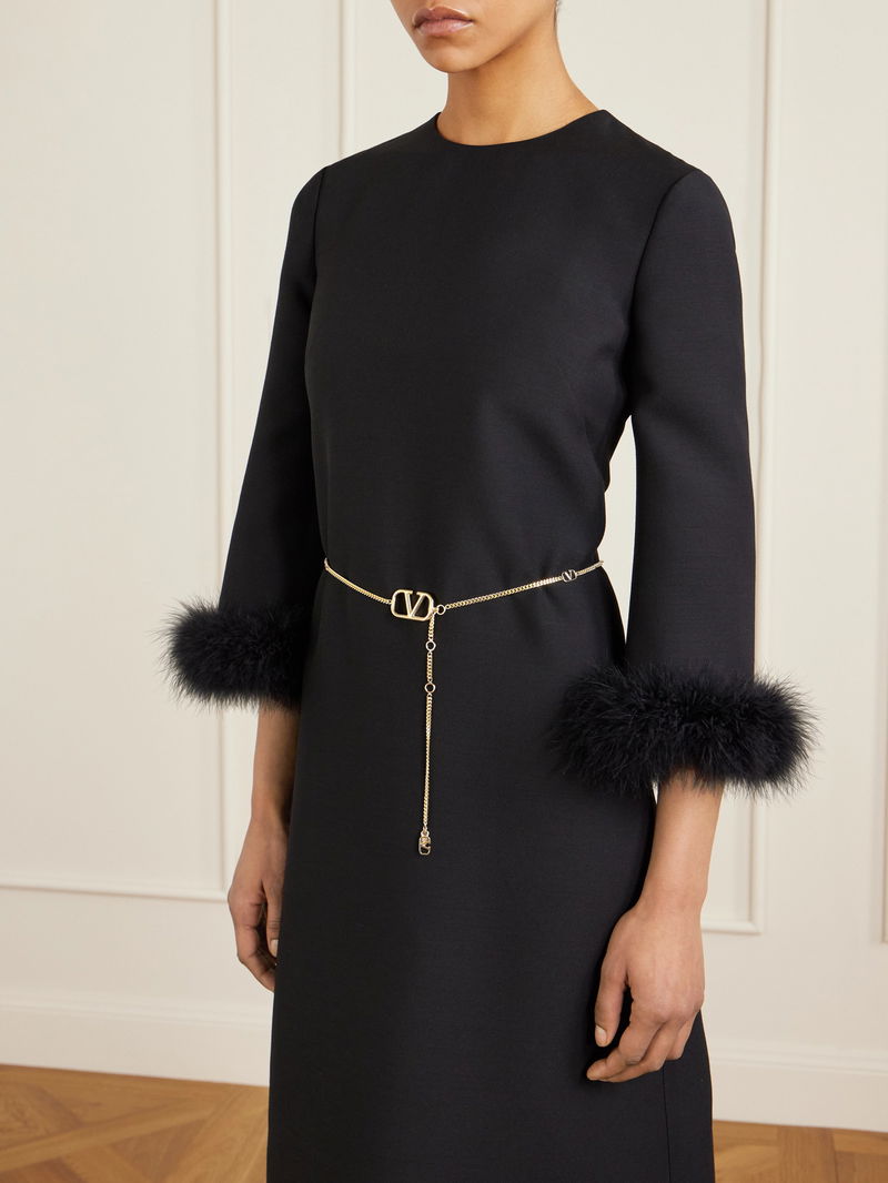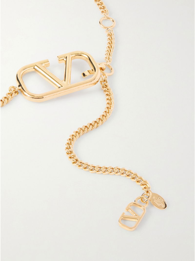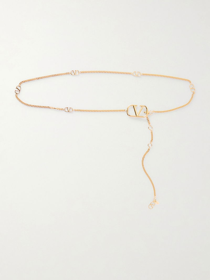 Valentino Garavani's belt is a finishing touch worth adding. Made from gold-tone metal, the dainty chain is strung with the instantly recognizable 'VLogo' and trails down the front. Wear it over blazers and dresses.