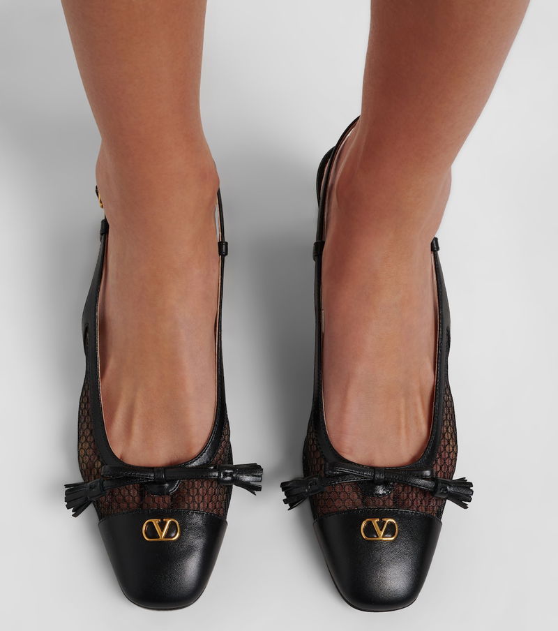 VLogo Leather And Mesh Slingback Pumps