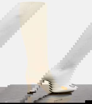 Knee boots, Leather, Logo-embellished, Block heel, Almond toe, Concealed zip fastening along side, Leather sole.