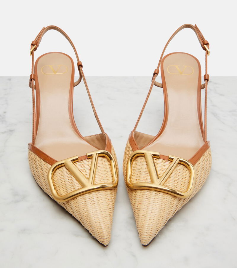 VLogo Leather-trimmed Slingback Pumps