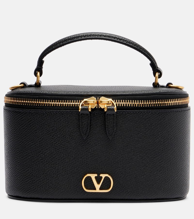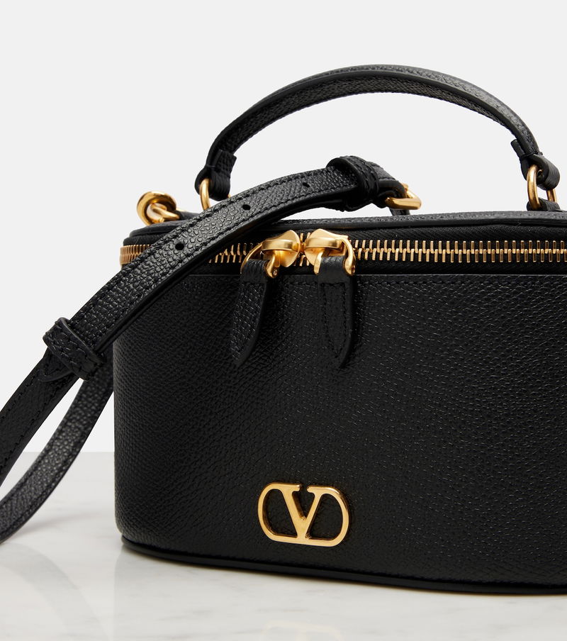 At once iconic and understated, Valentino Garavani's VLogo carries the Maison's legacy of elegance. Crafted from grained black leather, the signature symbol is featured on the front flap of this Mini vanity bag.
