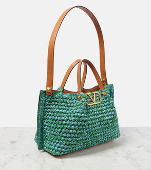 Valentino Garavani's tote is embroidered with the label's Toile Iconographe - the pattern is a modern iteration of the founder's original 'V'. Woven from raffia in a structured design, it's trimmed in smooth leather and features the house's signature 'VLOGO'. It's spacious enough to hold your phone, a small wallet and a paperback book.