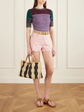 At once iconic and understated, Valentino Garavani's VLogo carries the Maison's legacy of elegance. The symbol graces the front of this leather-trimmed raffia basket bag.