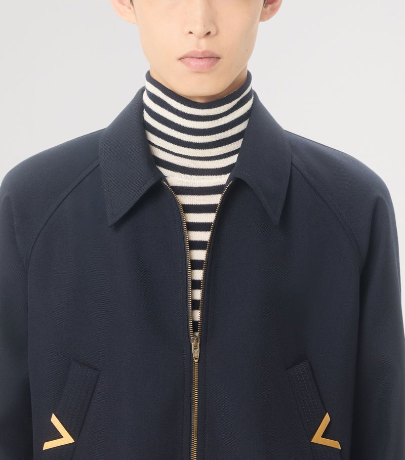 Beyond a logo, Valentino's VLogo has become something of an objet d'art for the House, with its sleek, circular form bringing a sculptural flair to everything from its headquarters to its iconic footwear. Here, it elevates the pared-back form of a technical wool-blend bomber jacket with cut-out gold-tone details at the pockets, contrasting functional aesthetics with luxury detailing.