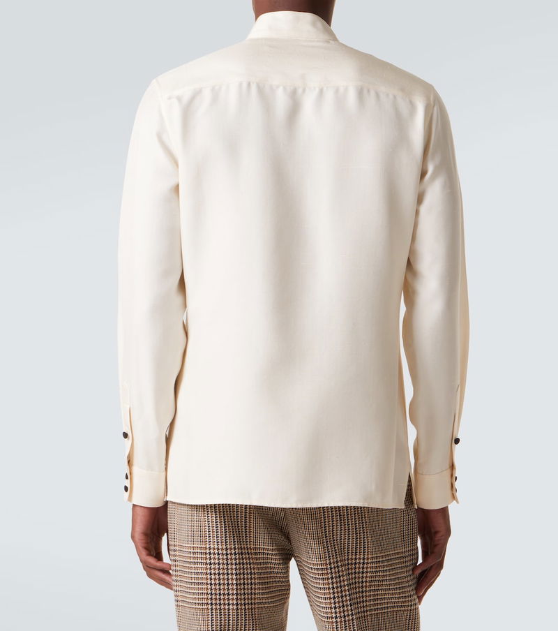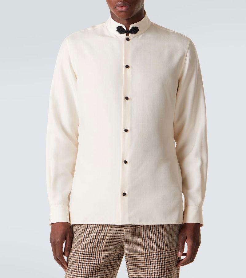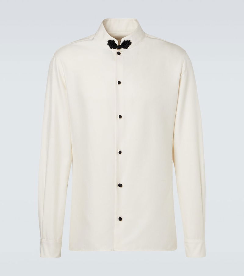 Embrace timeless sophistication with this Italian-crafted design from Valentino. This button-down shirt features a pure silk construction and a buttoned velvet detail at the collar.