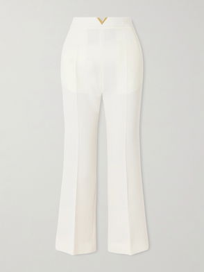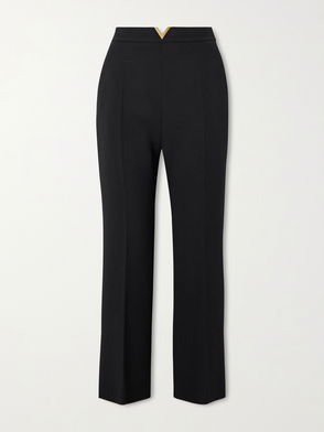 These Valentino pants are expertly crafted in Italy from virgin wool crêpe for a cozy, warm texture. The pair is tailored to a straight-leg silhouette and adorned with the signature VGold at the waist.