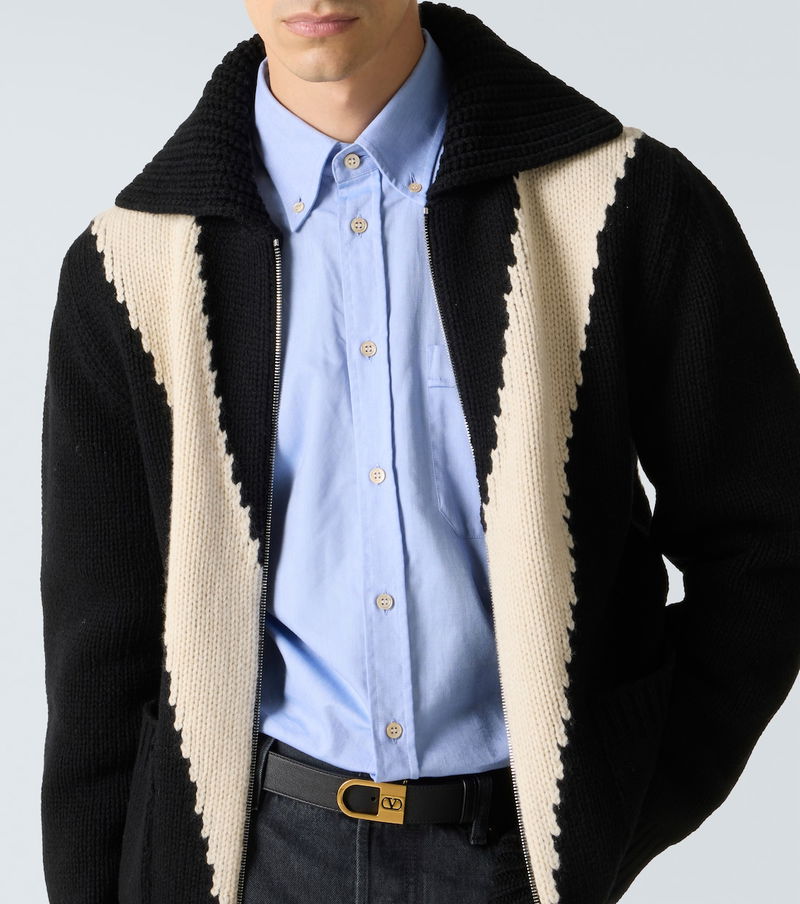 This sweater from Valentino is knitted from virgin wool and features a zip-up silhouette. The design is complete with patch pockets and a contrasting V motif on the front.