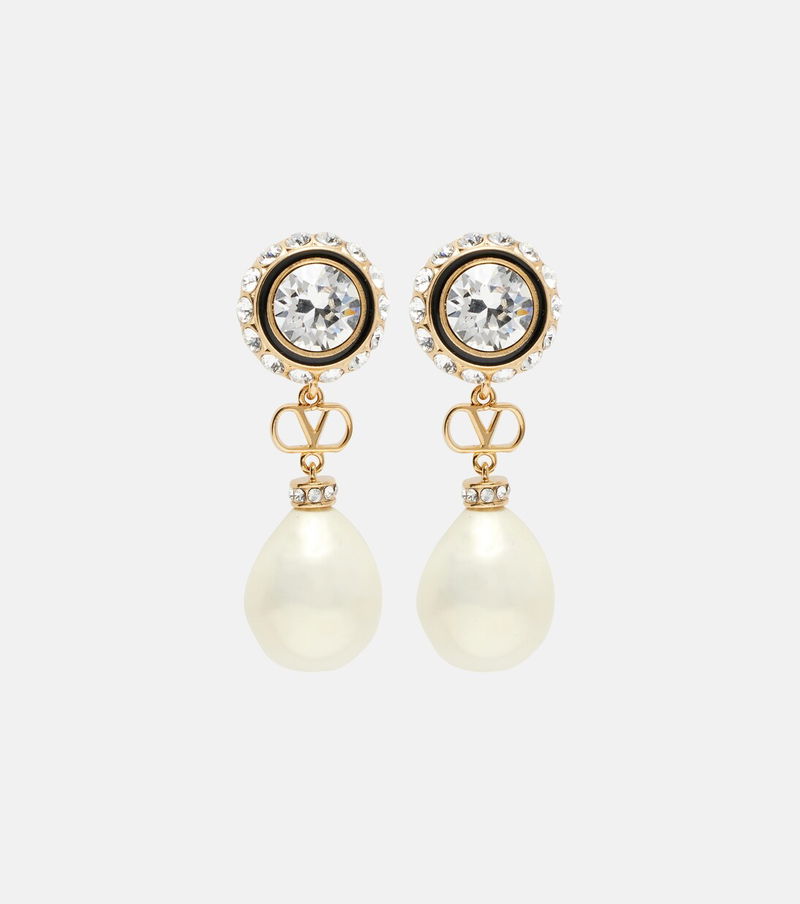 These VLogo drop earrings from Valentino carry a shimmering sparkle with them. Crafted from gold-toned brass, this pair features two Baroque-shaped glass pearls and round-cut crystal embellishments.