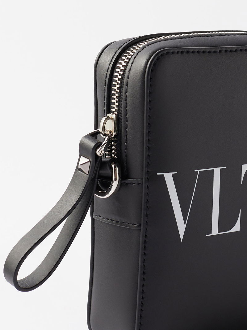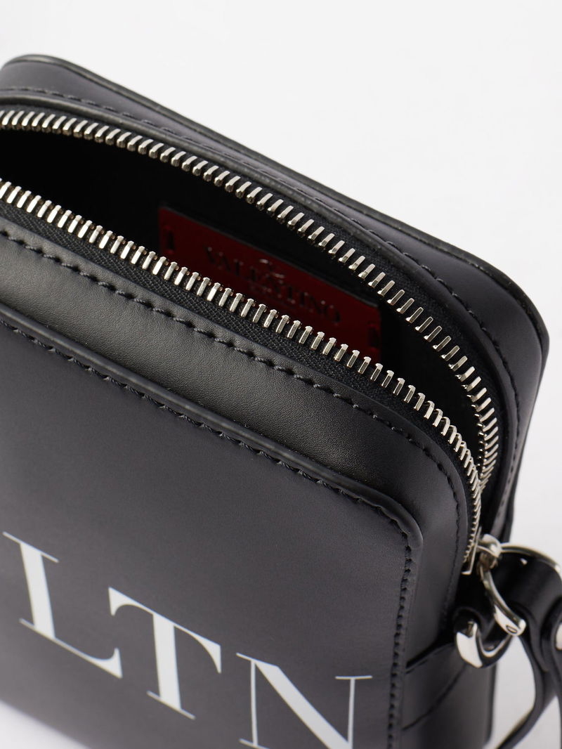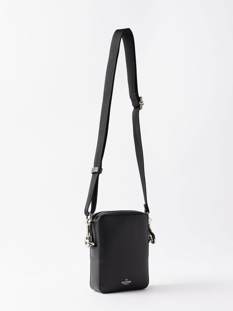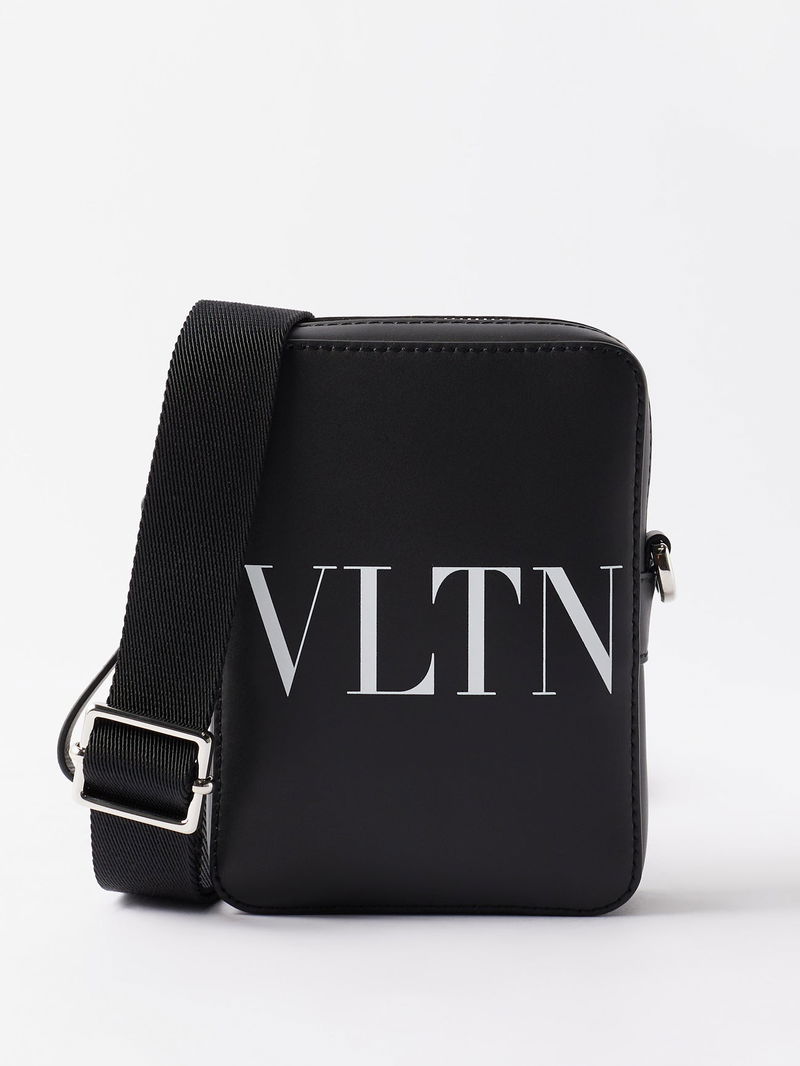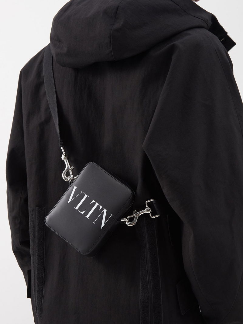 Based on the classic camera pouch, Valentino Garavani’s black leather cross-body features a white archive-inspired VLTN logo.