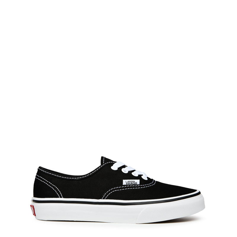 Embrace the rebel in your youngster with these Authentic Trainers by Vans. Crafted with a canvas upper, these trainers exude a sense of effortless cool. The canvas lining and sock ensure maximum comfort, making these trainers perfect for all-day wear. And let's not forget about the legendary rubber waffle sole that provides exceptional grip, allowing your adventurous child to confidently take on any terrain. The classic fox taping features on these shoes along with the round-toe design with a lace-up fashion. Available in a sleek black and white colourway, these trainers are a versatile addition to any wardrobe. And with half sizes available, you can find the perfect fit for your little ones' feet. Look closely, and you'll spot the iconic 'Off the Wall' logo proudly displayed at the back, a nod to Vans' rebellious spirit and rich heritage.