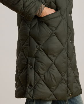 Jacket, Shell, Faux shearling, Quilted, Paneled, Hooded, Front pouch pocket, Button and concealed zip fastening at front, Zip fastening along sides, Non-stretchy fabric, Mid-weight fabric.