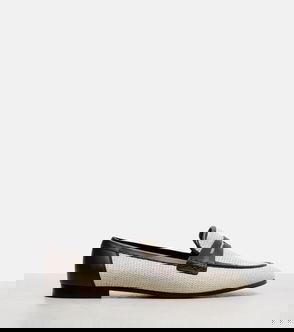 Penny loafers, Two-tone, Leather, Round toe, Slip on, Leather sole