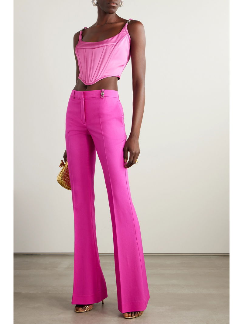 Versace's pants are tailored with a glamorous flare suit the proportions of the matching jacket so well. Cut from pure wool-twill, they have sharply pressed creases through the front to accentuate the shape.