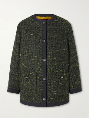 Fringed Metallic Checked Wool-Blend Tweed Jacket