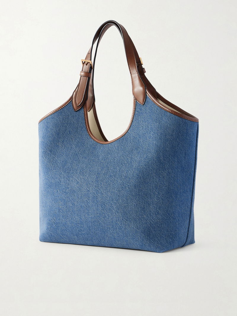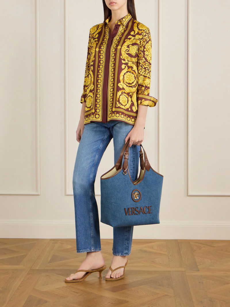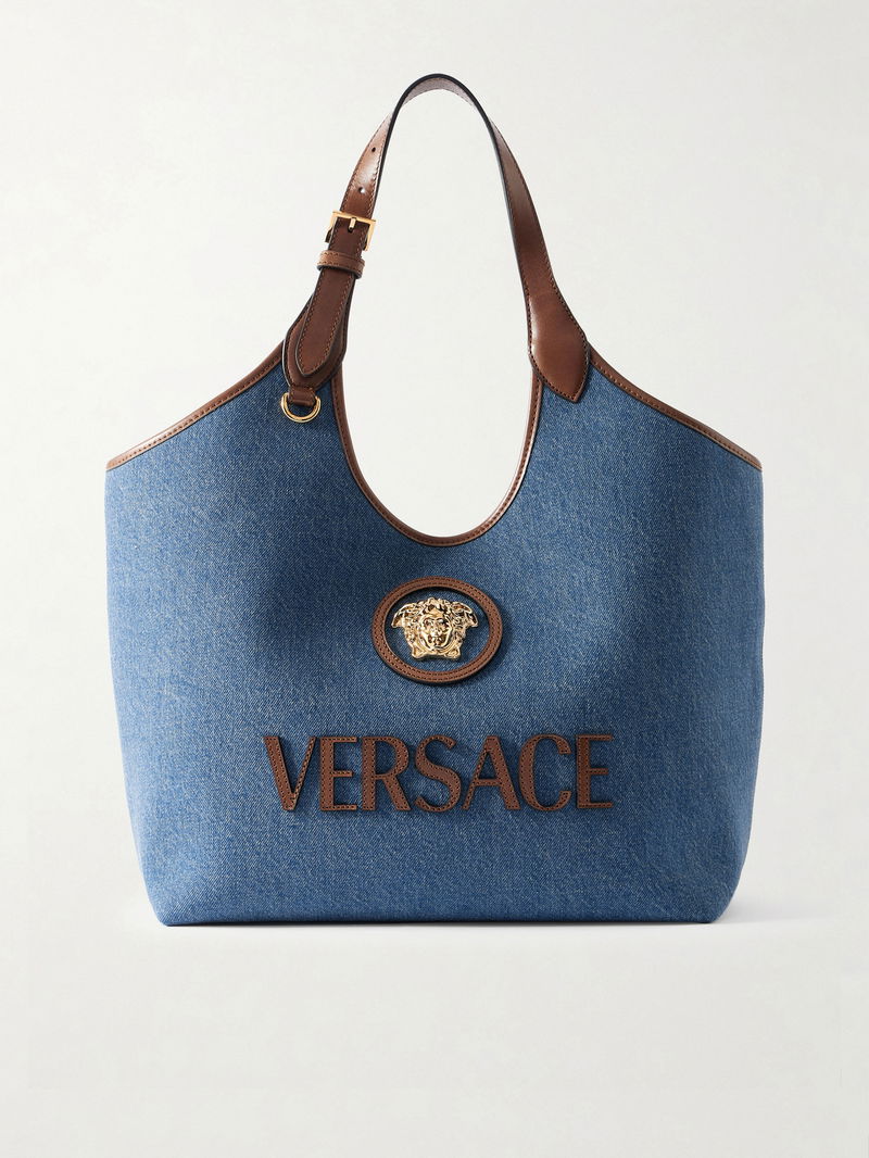 Versace's tote is defined by a gold-tone Medusa head, which has been a house signature ever since it debuted in 1992. Made in Italy from denim, it has leather trims and buckled top handles that you can adjust for your perfect drop. Keep your latest read and headphones inside, putting cards in the zipped pocket.