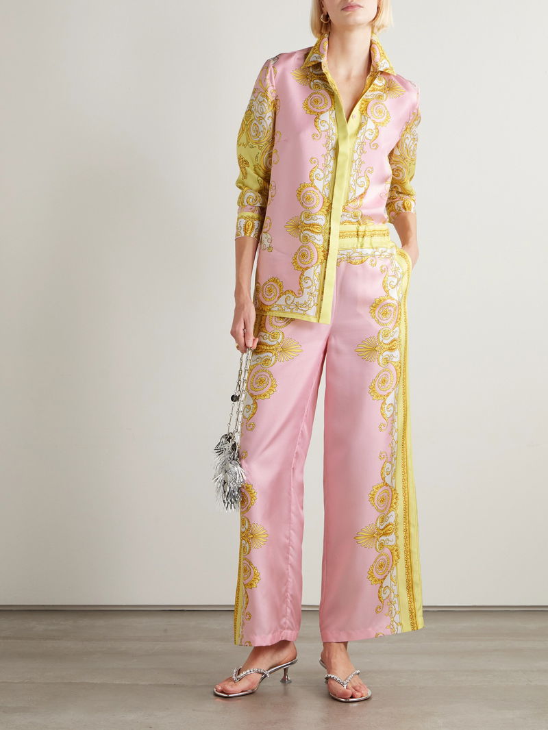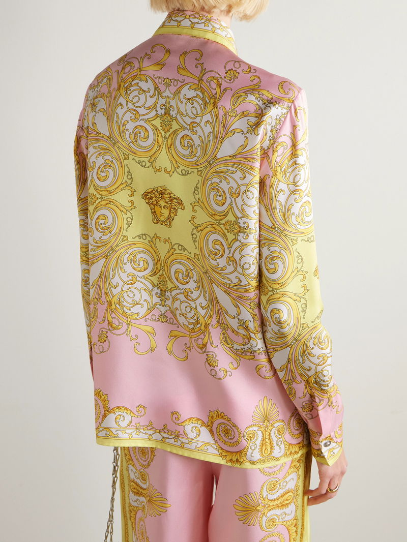First introduced by Gianni Versace in the early '90s, the 'Barocco' print remains a defining symbol of the house's opulent style. This shirt is cut from fluid silk-twill patterned with a pink reinterpretation of the iconic motif, giving the archival design a modern, romantic edge. Style it with denim for everyday luxury or pair it with the matching pants for a statement look.